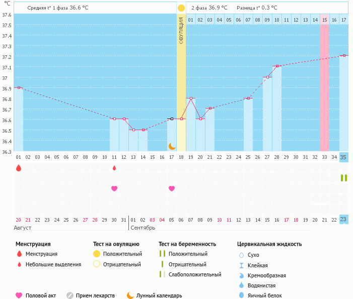 Девочки, показываю вам свой график, чтобы вы видели, что не всегда все происходит так как в учебнике написано. У меня очень плохо росла БТ после овуляции (кстати, дата О точная, так как я была на фолликулометрии), гинеколог каждый раз мне говорила пить дюфастон (что я вначале и делала, но тогда тоже были пролетными циклы), но вы сами можете убедится, что при таких странных температурах чудо тоже случается! если бусинка приняла решение прийти в вашу семью, ее ничто не остановит! )))))
