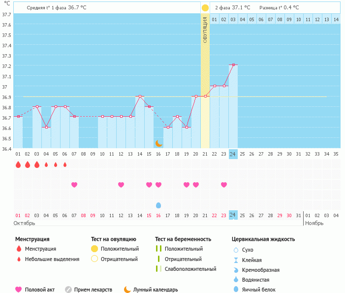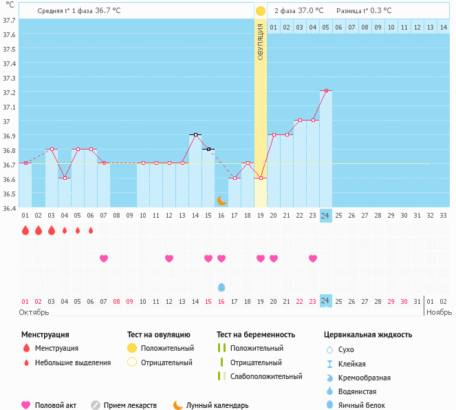Мой график базальной t°, цикл от 1 октября 2016
