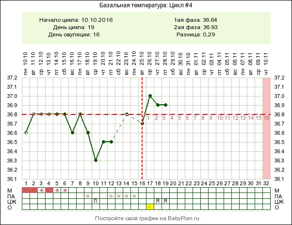 Жалко, конечно, что в период вероятной о пропущены значения, они важны. Но тут вот по графику я б на 16дц предположила О. 36.8 к вас и для первой фазы норм температура.