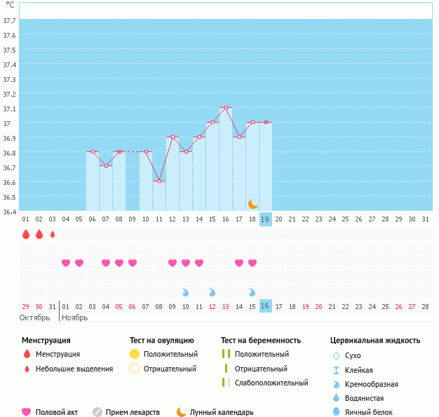 Мой график базальной t°, цикл от 29 октября 2016