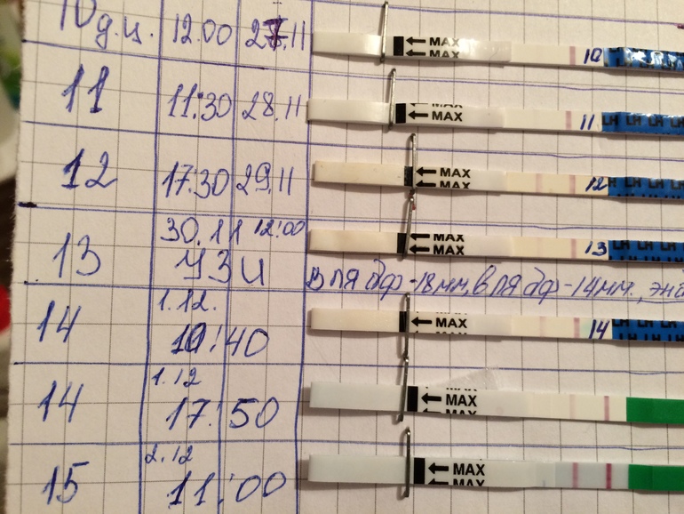сейчас сделала еще один тест-полоска слабее намного ,чем на последнем на фото.Это значит пик ЛГ прошел?
