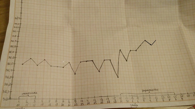 Беременность, признаки по БТ, есть ли шанс?Девочки,подскажите пожалуйста...завтра 25 день цикла и последний день приема утрожестана.