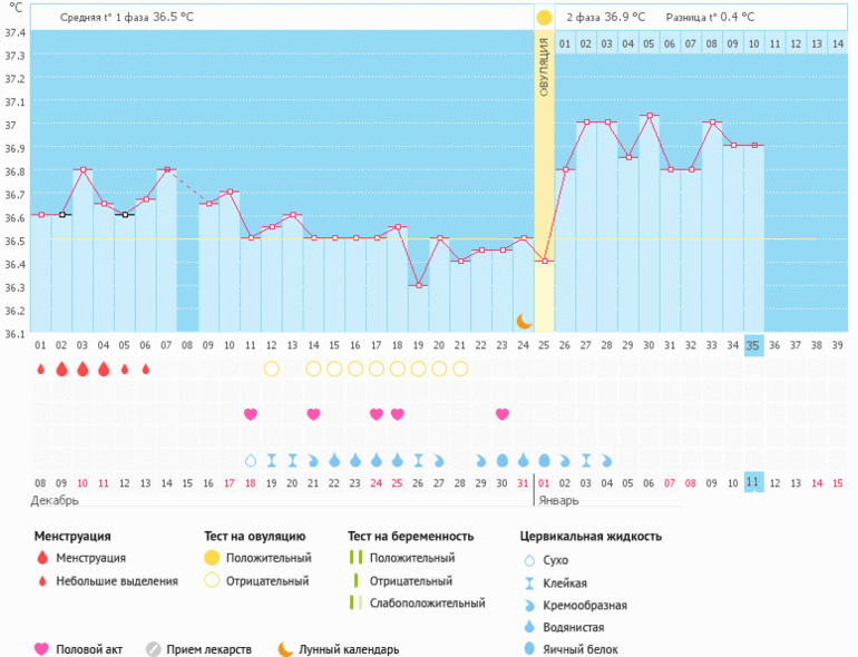 У меня второй цикл измерений и графики абсолютно разные! Самое главное не маленькая или высокая бт, а разница температур между фазами, а она у вас хорошая! Удачи в этом цикле!