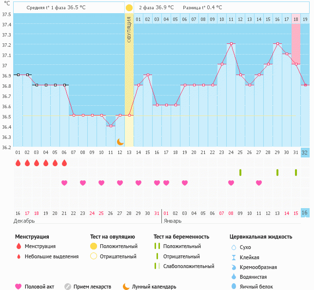 Девочки,может кому то будет полезны мои наблюдения)это третий овуляторный график БТ,в отличии от предыдущих скачущая первая фаза, падение т-ры до 36,4 и резкий скачок во вторую фазу. Из за смены климата О наступила чуть раньше, и не была стабильной на 37,00 как раньше.на 10дпо после ПА кровянистые выделения,ну я была уже уверена что опять пролет , 11 дпо -скорее не слабая полоска а глюк)какое же было удивление:на 13 дпо снова поднятие БТ а не падение как перед М - уже сомнений не было! Для меня БТ оказалась информативннее чем тесты((фрау показал только на 1дз слабую \\ апчхии на всех 😘