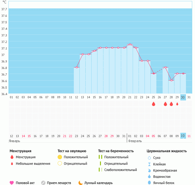 Спасибо! Вселяют надежду оптимистичные слова, что график хороший! Я думала, что с ним что-то не так, точнее с гормонами и поэтому не получается забеременеть, но похоже, что овуляция происходит позже, чем я думала. Надеюсь причина именно в этом. Уже запаслась тестами на овуляцию и готовлюсь к новому циклу. Почему-то на этот никаких надежд нет, хотя в глубине души теплится надежда. Сегодня 22 ДЦ, температура понизилась до 37 ((