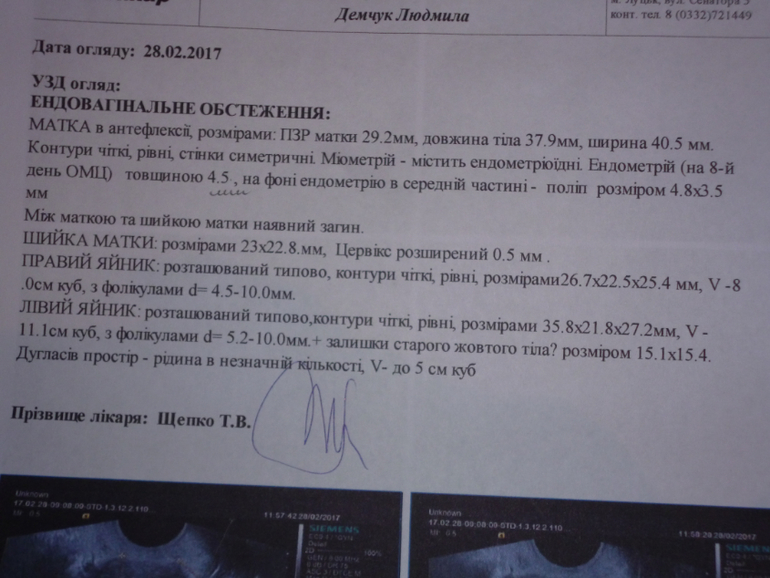 И про полип - один раз мне ставили такую фигню, но выписывали Диане-32. На следующем УЗИ полипов не было.