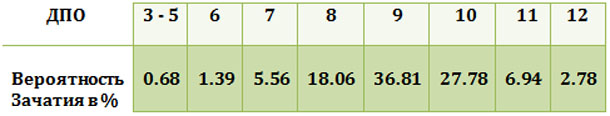 Для успокоения, вот Вам табличка вероятности имплантации по ДПО