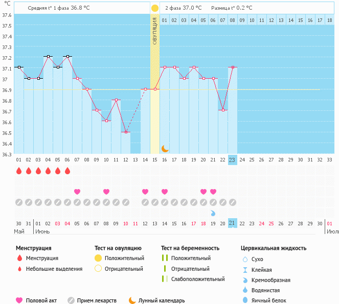 Мой график базальной t°, цикл от 30 мая 2017