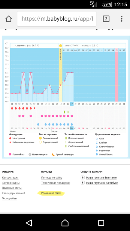 სალო ჯიჯავაძე в Графики базальной температуры 8 лет Вопрос Беременность, признаки по БТ, есть ли шанс? Вот такои мой график ,надеется на что нибудь? Посмотрите еще 20 записей на эту тему Отменить Ответить Наталия Надеяться всегда надо,но сейчас только 3ДПО,рано что-то говорить. 06.07.2017 Ответить Анна начинайте делать тесты на беременность через 10 дней после овуляции) почитайте о процессе зачатия. А в целом график хороший 06.07.2017 Ответить Таня Конечно! Удачи!!! 06.07.2017 Ответить Мой график базальной t°, цикл от 21 июня 2017 Мой график базальной t°, цикл от 16 июня 2017 Чаты Беременных Выберите чат: Январята-2026 Февралята-2026 Мартята-2026 Апрелята-2026 Майчата-2026 Июнята-2026 Июлята-2026 Августята-2026