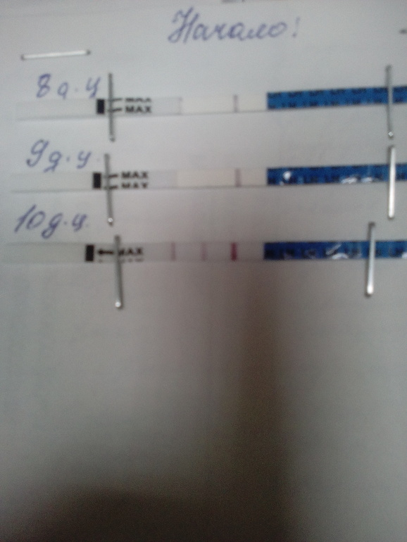 а это вот так показывают овуляцию тесты я родился фирмы!!!!жирной полосы я так и не дождалась! Она начала бледнеть к вечеру и на след.день (вчера)тест был совершенно пустой!!!!!