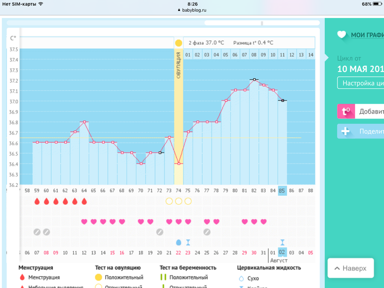 Vivienne в Графики базальной температуры 8 лет Есть шанс? Беременность, признаки по БТ, есть ли шанс? Девченки как думаете есть шанс или если бт начала понижаться больше не поднимется? Посмотрите еще 20 записей на эту тему Отменить Ответить Надежда Главное верить до конца! БТ может и опять подняться и не опускаться))) чего вас и желаю, удачи! 04.08.2017 Ответить Vivienne Спасибо большое но вот уже два дня бт падает сегодня уже 36.7(((( так что буду надеятся на следующий цикл 05.08.2017 Ответить Надежда Ничего, наши малыши лучше знают когда им появиться на свет. 05.08.2017 Ответить Vivienne Ага)))) лишь бы моя была пунктуальной 😄😊 05.08.2017 Ответить Сонечка Шанс есть всегда, но по собственному опыту скажу, БТ может до последнего дня держаться, а потом рухнуть и все...вам удачи! 02.08.2017 Ответить Vivienne Спасибо большое, а может опять подняться или если понижаетса то так и будет падат температура??? У меня это пока первый график я новичок по этим вопросам)))) 02.08.2017 Ответить Сонечка Все может быть 02.08.2017 Ответить Ведана мама десятерых Удачи! 02.08.2017 Ответить Мой график базальной t°, цикл от 8 июля 2017 Мой график базальной t°, цикл от 9 июля 2017 Чаты Беременных Выберите чат: Январята-2026 Февралята-2026 Мартята-2026 Апрелята-2026 Майчата-2026 Июнята-2026 Июлята-2026 Августята-2026