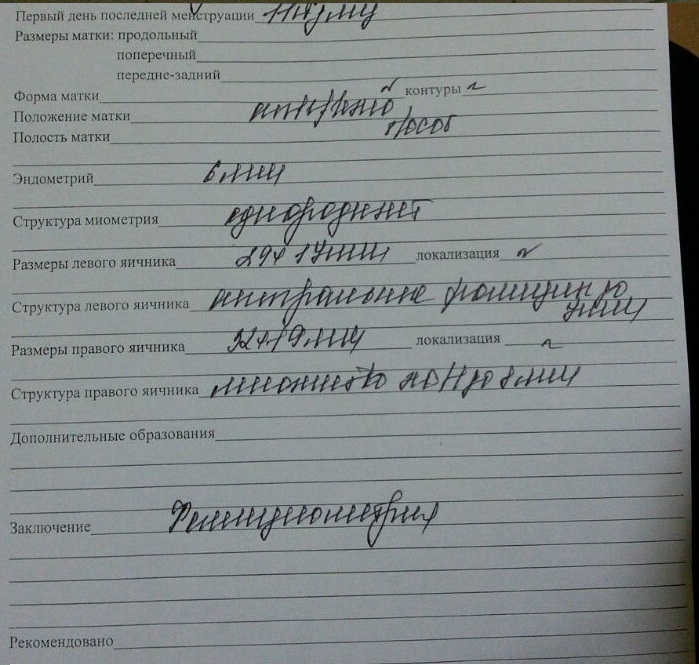 В общем сегодня была на УЗИ,чтоб посмотреть будет ли овуляция. Врач попалась странная и ничего мне не сказала.Только что "Гинеколог всё поймет". Может кто-то из вас в этом разбирается...подскажите. Спасибо заранее)