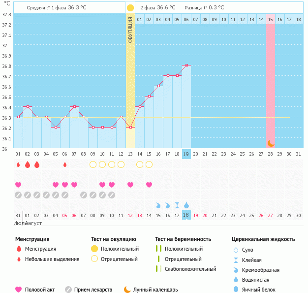 Из признаков: вообще в этом цикле все, что не свойственно обычно для второй фазы. И главный признак - грудь! Обычно начинает болеть и наливаться за день-два до О и проходит с наступлением М, в этом цикле она загадочно молчит, лишь увеличилась немного буквально за вчера-позавчера. Низ живота немного поднывает, как перед М, чего тоже раньше не наблюдалось. До сегодняшнего дня чувствовала по покалываниям в яичнике работу ЖТ, но сегодня этого нет, но появились покалывания в самой матке. Странные выделения белые водянистые (нет, не молочница, по-женски здорова). ТТ третий день держится 37,1-37,3, хотя норма во второй фазе для меня 36,8-37. То мёрзну, то внезапно может бросить в жар. А ещё состояние плаксивости второй день и сама я очень вялая, настроение по утрам второй день раздражительное. В общем, как думаете, о чём может говорить такой рост температуры и ощущения... есть шанс?)