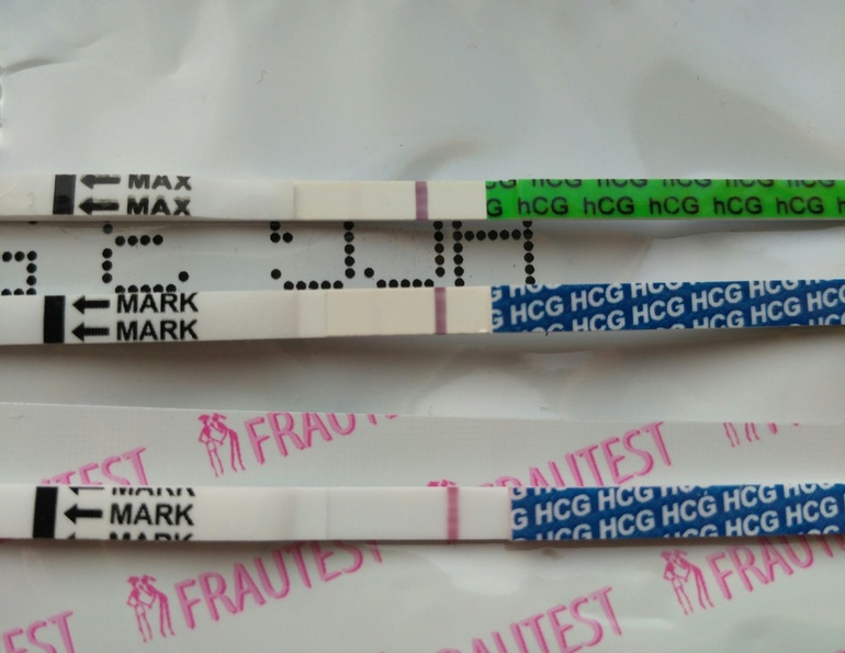 У верхнего теста я отчётливо вижу очень бледную, но палочку, на нижнем же тесте вроде как второй полоски сначала не было, а потом что-то проступило.