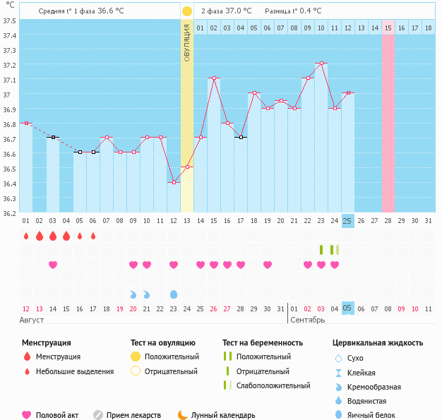 Марина в Графики базальной температуры 8 лет Мой график базальной t°, цикл от 17 августа 2017 Овуляция, тесты на овуляцию и БТ Посмотрите еще 20 записей на эту тему Отменить Ответить Ведана мама десятерых возможно.удачи 05.09.2017 Ответить Ёлка Надо дальше смотреть. А так всё может быть! Удачи! 05.09.2017 Ответить Albina Все может быть!о пролете думать рано пока!у меня тоже непонятно как скакала в итоге вторая правда пока слабая полосочка 05.09.2017 Ответить Велла-Ветта-Виола....... если слабая вторая/,это уже о чем то говорит 05.09.2017 Ответить Екатерина Альбина Добрый день) Дай Бог все будет ярче и ярче)), а как самочувствие ваще?) 05.09.2017 Ответить Екатерина Извините ваше) 05.09.2017 Ответить А всё так красиво начиналось, чтож мы падаем-то Мой график базальной t°, цикл от 19 августа 2017 Чаты Беременных Выберите чат: Январята-2026 Февралята-2026 Мартята-2026 Апрелята-2026 Майчата-2026 Июнята-2026 Июлята-2026 Августята-2026
