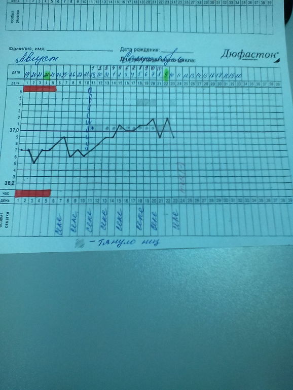 то что бт 37 совсем не означает Б. У меня никогда не было 37 и всё получилось (беременные графики есть на 1 и 5 стр в дневнике). По графику могу судить только о небольшом прогестероне (есть способ диагностики прогестерона по БТ)...