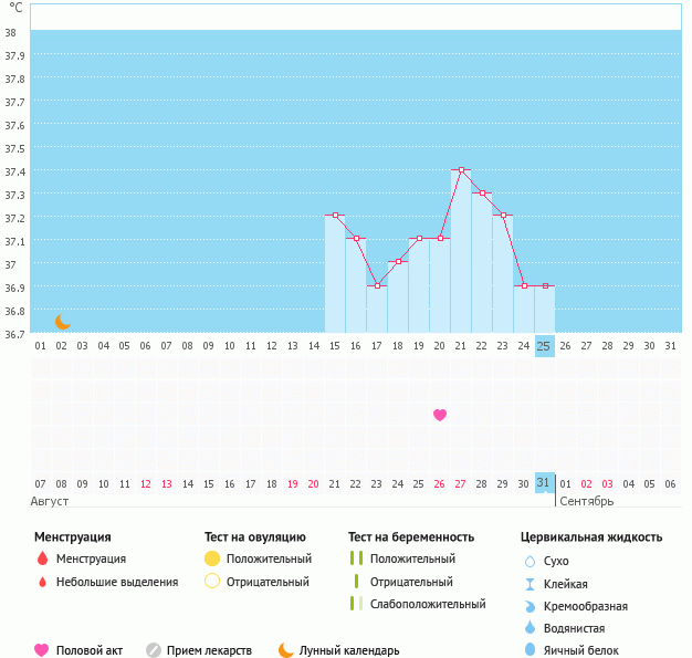 Мой график базальной t°, цикл от 31 августа 2017