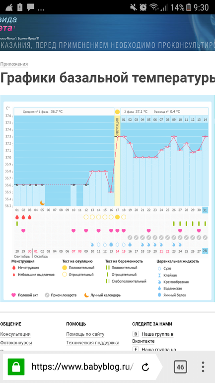 Мой график базальной t°, цикл от 9 октября 2017 Мой график базальной t°, цикл от 3 октября 2017