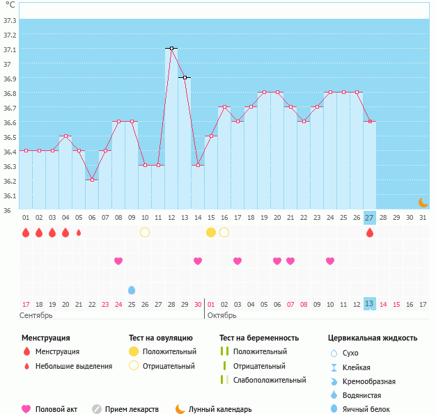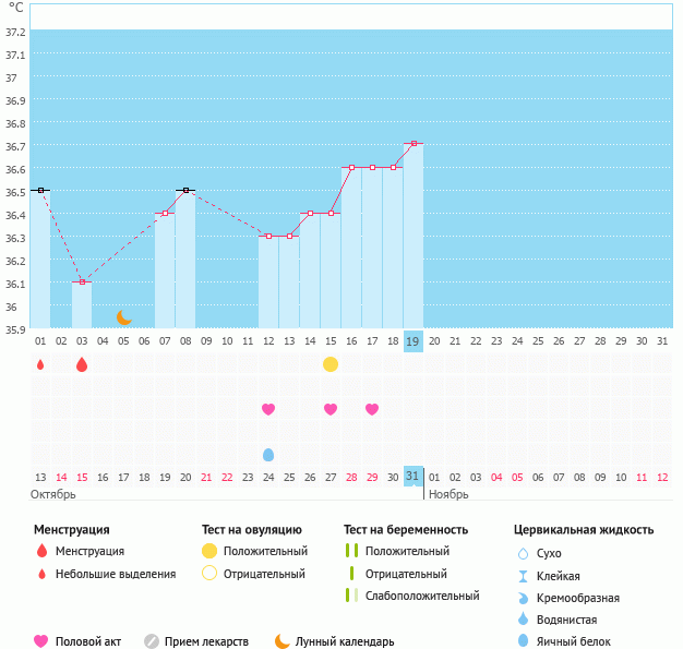 Девченки подскажи что не так, второй месяц программа не выставляет овуляцию, хотя тесты положительные на 15 д.ц. были. Нижний график предыдущий сентябрь, ну там понятно в первой фазе болела и температура скакала. А сейчас то что не так?Наверное температура низкая для второй фазы((( Самой выставить на 15 д.ц.?