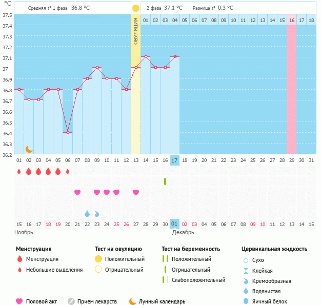 Показала мой график на узи- врач сказала, что можно было так предполагать, но провела черту на температуре 37 градусов, и сказала овуляция- когда значения выше этой черты. Т.е. на 13-14 д.ц.