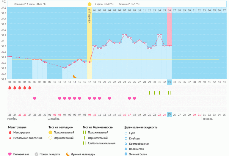 Мой график базальной t°, цикл от 23 ноября 2017