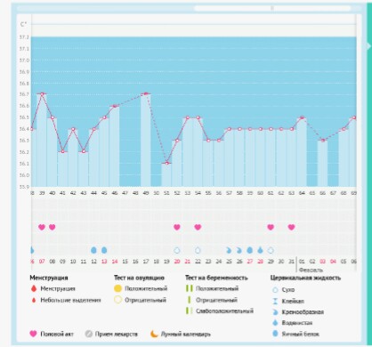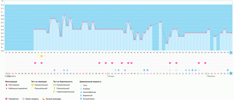 ОЦЕНИТЕ мой график! Всё ли в порядке?Всем доброго времени суток! Кто опытный в расшифровке графиков, помогите пожалуйста разобраться. Моему младшему сыну 7 месяцев, график я начала вести в декабре, когда появились выделения похожие на ЯБ и начал побаливать правый бок. Мне казалось, что это овуляция. Но это был лишь воспалительный процесс, который благодаря БТ удалось вовремя обнаружить и устранить. С того момента тема БТ заинтересовала меня еще больше. И так, на моём графике большинство значений низкие, не выше 36,5 (исключение дни воспаления и простуды там высокие показатели) Если я верно понимаю, то мой график монофазный? Т.е. второй фазы пока нет? Сами температурные показатели могут говорить о том какой гормон работает в данный момент? Пока я смотрела другие графики и читала про БТ везде замечала невысокие показатели температур при работе эстрогена. На графике гиполактенемии все значения были высокие. Хотя пролактин у меня работает хорошо. Несмотря на то что ребёнок дополнительно питается 4-5 раз в день, без прокладок для груди не обойтись (на груди он также 4-5 раз в день). Так какой же гормон я вижу на своём графике? Эстроген или все же пролактин? Еще интересно, могут ли месячные начаться без второй фазы? Ведь при ановуляции они тоже идут. И в течении этих месяцев я все же замечаю изменения в организме, которые раньше были при обычном цикле. Боли в груди (без застоев), боли внизу живота, головная боль как за пару дней до М, характер выделений. В общем, все тоже самое, только без М.