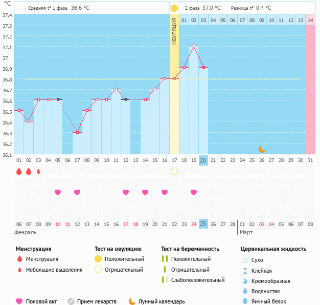 Solna в Графики базальной температуры 8 лет График от 6 февраля Овуляция, тесты на овуляцию и БТ Как думаете, когда была О? Мне кажется, что график неверно выставил. Посмотрите еще 20 записей на эту тему Отменить Ответить Евгения Мне тоже кажется, что не правильно.а цикл у вас в среднем какой? Сколько дней? 25.02.2018 Ответить Solna В среднем 29 дней. От 27 до 32. В прошлом цикле на 16 день была, цикл 29 дней. Но по температуре кажется, что в этот раз раньше. 25.02.2018 Ответить Олеся Вполне возможно и на 14-15-16 25.02.2018 Ответить Solna Тоже думаю, что на 14-15. Спасибо. 25.02.2018 Ответить Хотелось бы верить что это Овуляция))) Мой график базальной t°, цикл от 9 февраля 2018 Чаты Беременных Выберите чат: Январята-2026 Февралята-2026 Мартята-2026 Апрелята-2026 Майчата-2026 Июнята-2026 Июлята-2026 Августята-2026