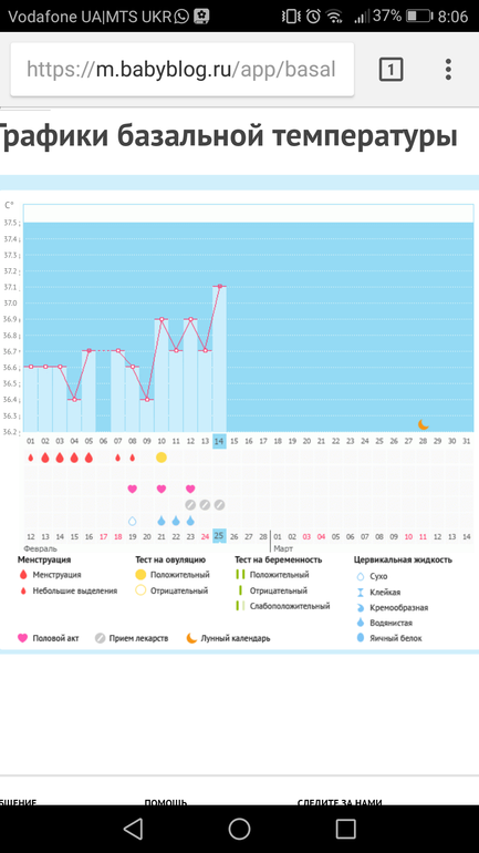 Мой график базальной t°, цикл от 13 февраля 2018 Овуляция была?
