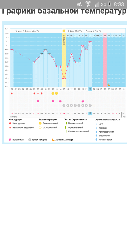 Сейчас такая вот картина...Кстати, с вечера живот ноет и поясницу тянет, у меня тоже появились подозрения, что О может сейчас быть, но вот температура упала слишком низко