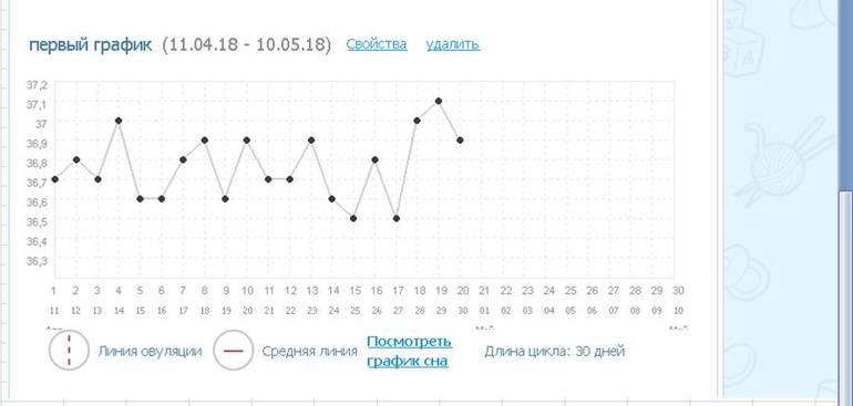 Мой график базальной t°, цикл от 6 апреля 2018 ЯБ и овуляция.