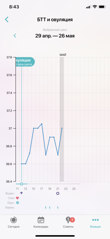 Беременность, признаки по БТ, есть ли шанс?Девчонки, помогите. Планируем с мужем уже пол года. Сейчас у меня график БТ такой: после О держалась 37, на 6 ДПО упала до 36,6, потом поднялась на 2 дня до 36,9 и опять упала до 36,6. Сейчас держится 37, до М 4-5 дня. Может ли это быть беременность?🤰🏼 Или опять пролёт?