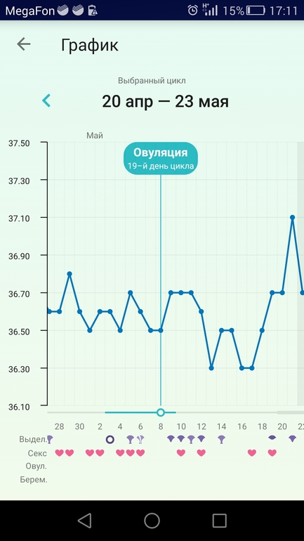 Верьте графику на ББ!!! Он выставляет овуляцию по температурным показателям! А ваш график в телефоне ставит О исключительно из расчёта средней длины ваших циклов.