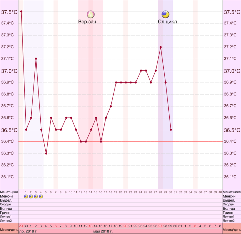 Беременность, признаки по БТ, есть ли шанс?Прошлые м с 30 апреля по 4 мая. Я после каутеризации яичников 28 марта. Надеялась на этот месяц, грудь набухла и болела две недели, бт вроде не плохая была, живот два дня тянет и вот сегодня упала.