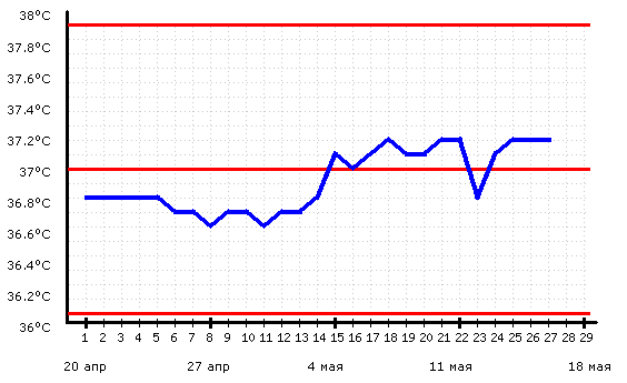 ОЦЕНИТЕ мой график! Всё ли в порядке?Привет всем, поделитесь мнением по поводу графиков. Мне кажется, вторая фаза какая-то странная. Я посмотрела в Инете на "правильных" графиках тем-ра после первого подъема еще так поднимается горочкой, а потом также плавно опускается.