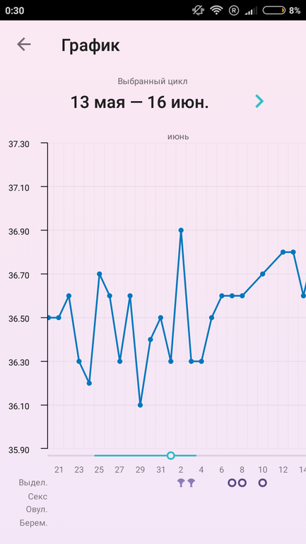 ОЦЕНИТЕ мой график! Всё ли в порядке?Второй цикл подряд после отмены ОК строю график базальной температуры, никак мой график не попадает под определение идеального,какой то забор,и скачет то вниз то вверх,судя по выделениям овуляция была не в те дни,когда ставит сама программа. Я читала что забор,это не очень хорошо. Девочки,посмотрите пожалуйста,я уже совсем запуталась,как в этом заборе искать овуляцию...