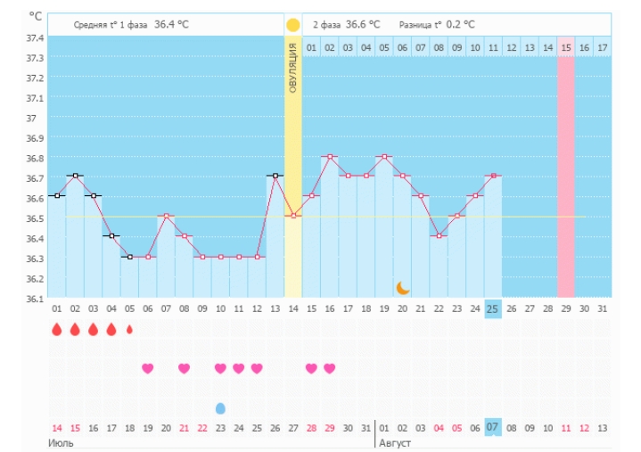 График БТ Мой график базальной t°, цикл от 8 июля 2018