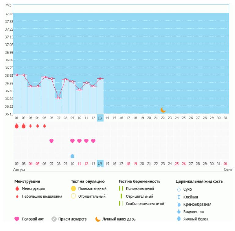 ну где же ты родненькая, овуляшечка ;-( Мой график базальной t°, цикл от 2 августа 2018