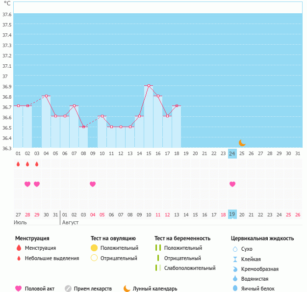 Ура! Мой график беременный!Хочу поделиться с вами своей радостью. Сегодня 6 дз, я решилась посмотреть правде в глаза и сделать тест. И была в шоке увидев две полоски. Думала что задержка гормональный сбой, киста жт даёт мне симптомы как у беременных. После овуляции ( я ее почувствовала на 14 ДЦ) бросила бт потому что градусник потеряла в отъезде. Думаю что надо от него отдохнуть если так получилось. И на Б не надеялась потому что па далеко от овуляции, я тогда была в отъезде, и бт низко потом упала, я расстроилась. Выкладываю свой брошенный график