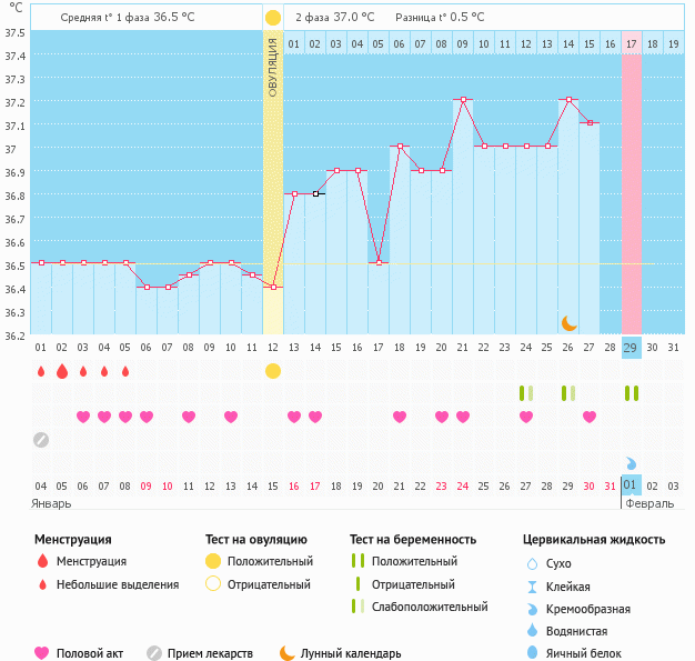 Ура! Мой график беременный!Мой график, на котором видно всё! И разницу фаз, и овуляцию, и инплантационное западение, и, соответственно, беременность!))))) К тому же, я с первого дня чувствовала, что беременность наступила, без фанатизма. Я знала, я чувствовала с самого первого дня после имплантации и просто выжидала время, когда уже можно было сделать тест)) И он стал полосатым!)