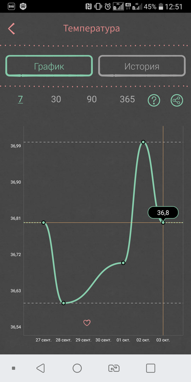 Беременность, признаки по БТ, есть ли шанс?Девочки подскажите первый раз в жизни начала вести БТ но как правильно не разобрались( у меня Месеки были с 10 по 15 сентября цикл 25-26 дней БТ начала вести 1 октября тести отрицательные до М 2 дня ноет живот и БТ странная ( не могу понять это Б или нет? Вобщем помогите разобраться)