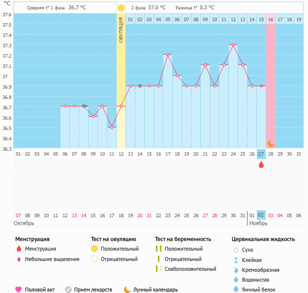 В норме разница между фазами 0,3-0,5°, но всё очень индивидуально. Есть беременные графики и с разницей в 0,2°.