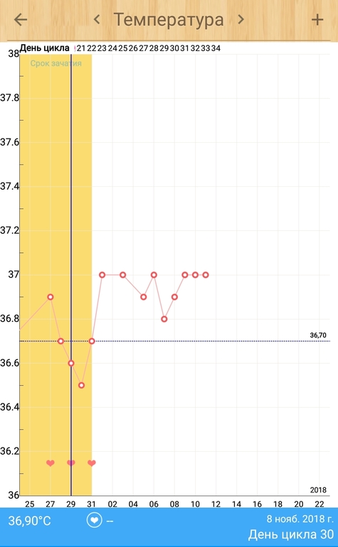 девочки, 7 ноября на графике похоже на Из темпа поднялась до 37 и все выше не растёт. Сегодня 12 дпо тест с утра пустой ledi check все можно ждать месячные?