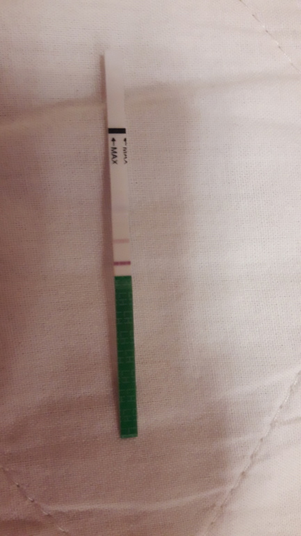 Пришли месячные.И тест на О.действительно должен показать // ярких приярких полоски а не такую как у меня.Поэтому пролет🙁