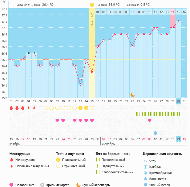 Мой график базальной t°, цикл от 15 ноября 2018 UPD ЗБ