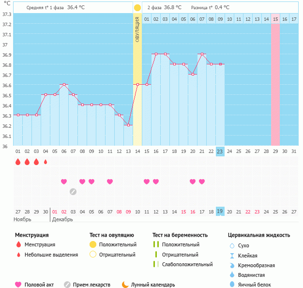 Спасибо, но по-моему в этом цикле опять неудача. Температура поднялась вчера до 37.0, а сегодня упала до 36.7. Похоже что новогоднего чуда ждать не стоит. К сожалению,график не получается прикрепить