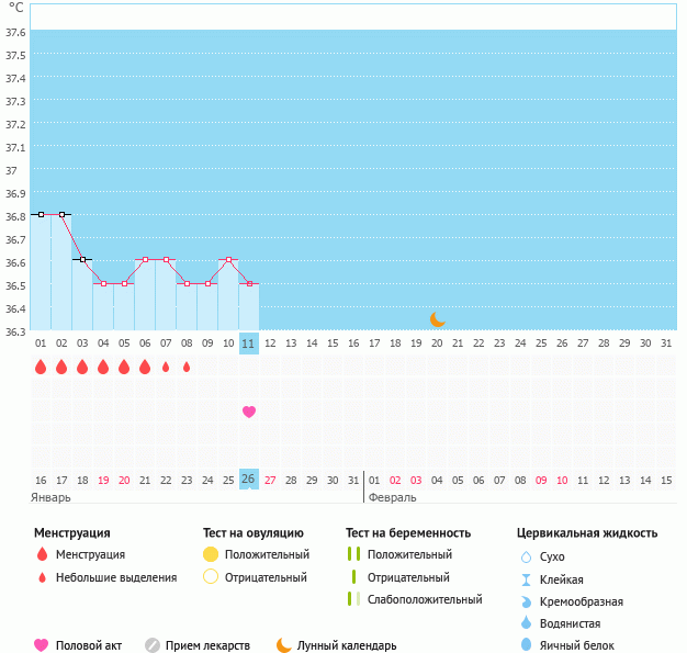Мой график базальной t°, цикл от 16 января 2019