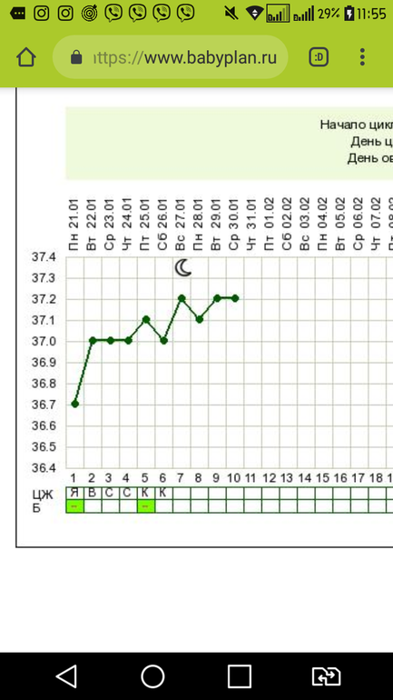 Да вот....к сожалению стала делать только с 21....мне уже тоже говорили...что судя по графику очень похоже....а нас незащищеный ПА был 20....мне странно что в предполагаемый день месячных температура низкая...а потом так резко вверх и не спадает....даже чуток ещё выше стала....и странно было...что живот тянул именно 21 и 22 числа....а потом тишина...27 снова прям сильно тянул, чувство воздуха внизу живота....28 и по сей день тишина снова....вообще ничего не понимаю в общем!