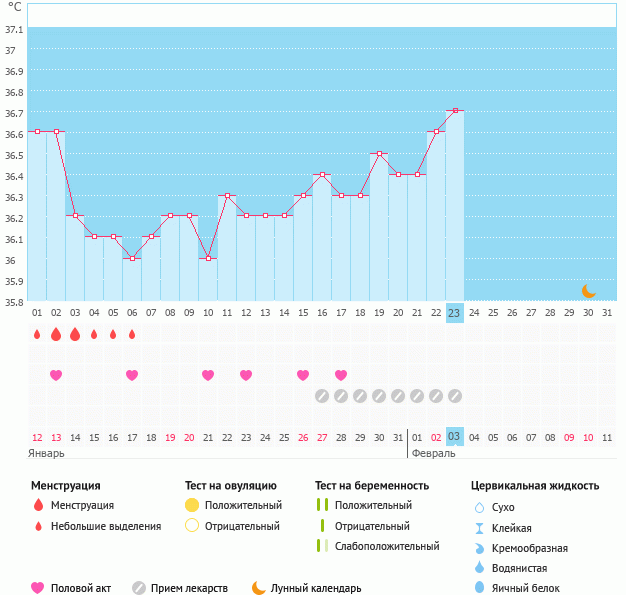 а еще я бы по графику сказала бы что она была на 21 дц. всплеск лг был тогда скорее всего 19-20дц. но вы тесты в эти дни не делали. если поставите в графике не учитывать температуру во время менструации, т.к. обычно в менструацию ее не меряют и не учитывают, то график дня через два вам нарисует овуляцию, как раз на 21 дц.