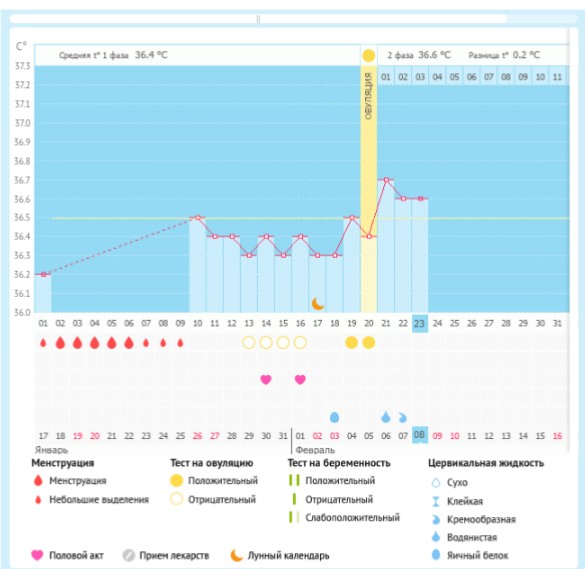Мой график базальной t°, цикл от 17 января 2019