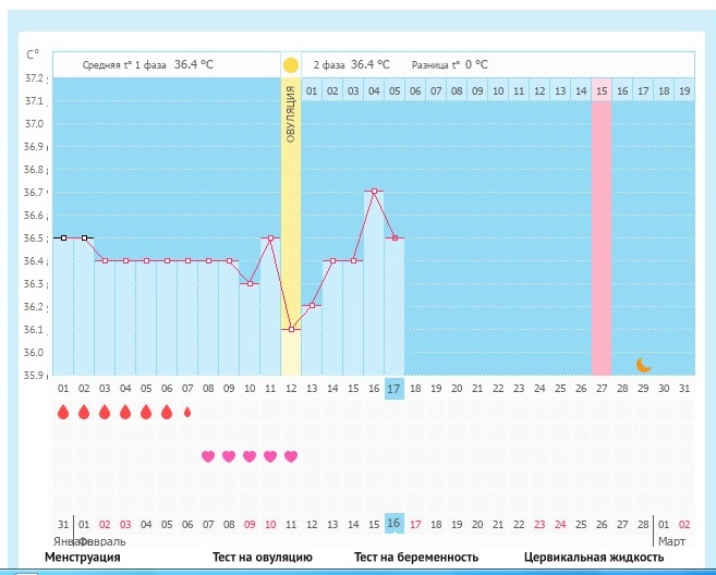 У вашей первой фазы 36,5. Мда, низкий. А вы, может, орально измеряете? Завтра увидим, что будет.